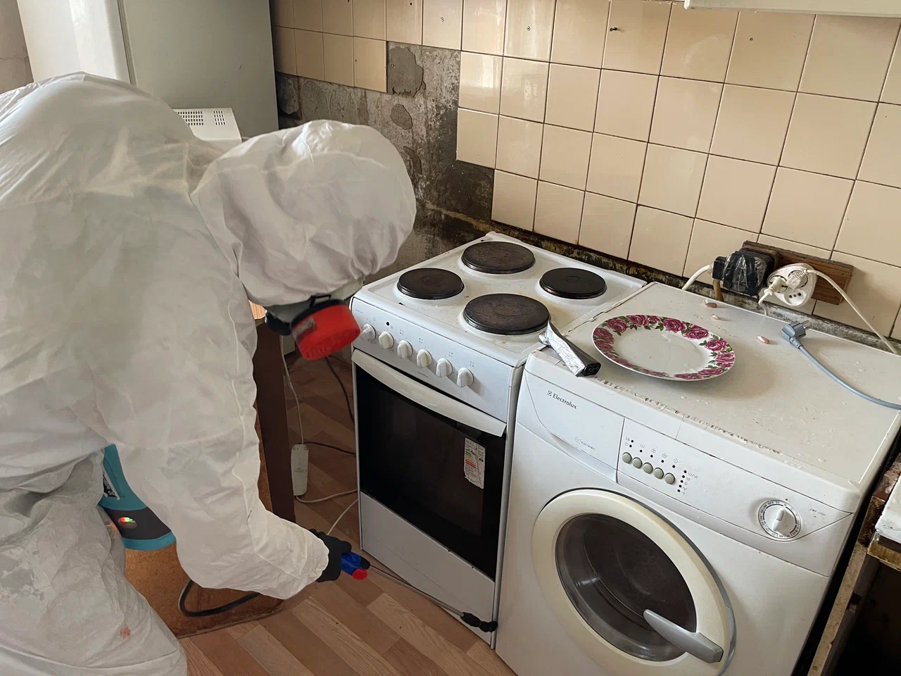 - Продукты — уберите из обрабатываемого помещения все продукты и посуду (или сложите их в одно место и накройте водонепроницаемым материалом, например мусорными пакетами).