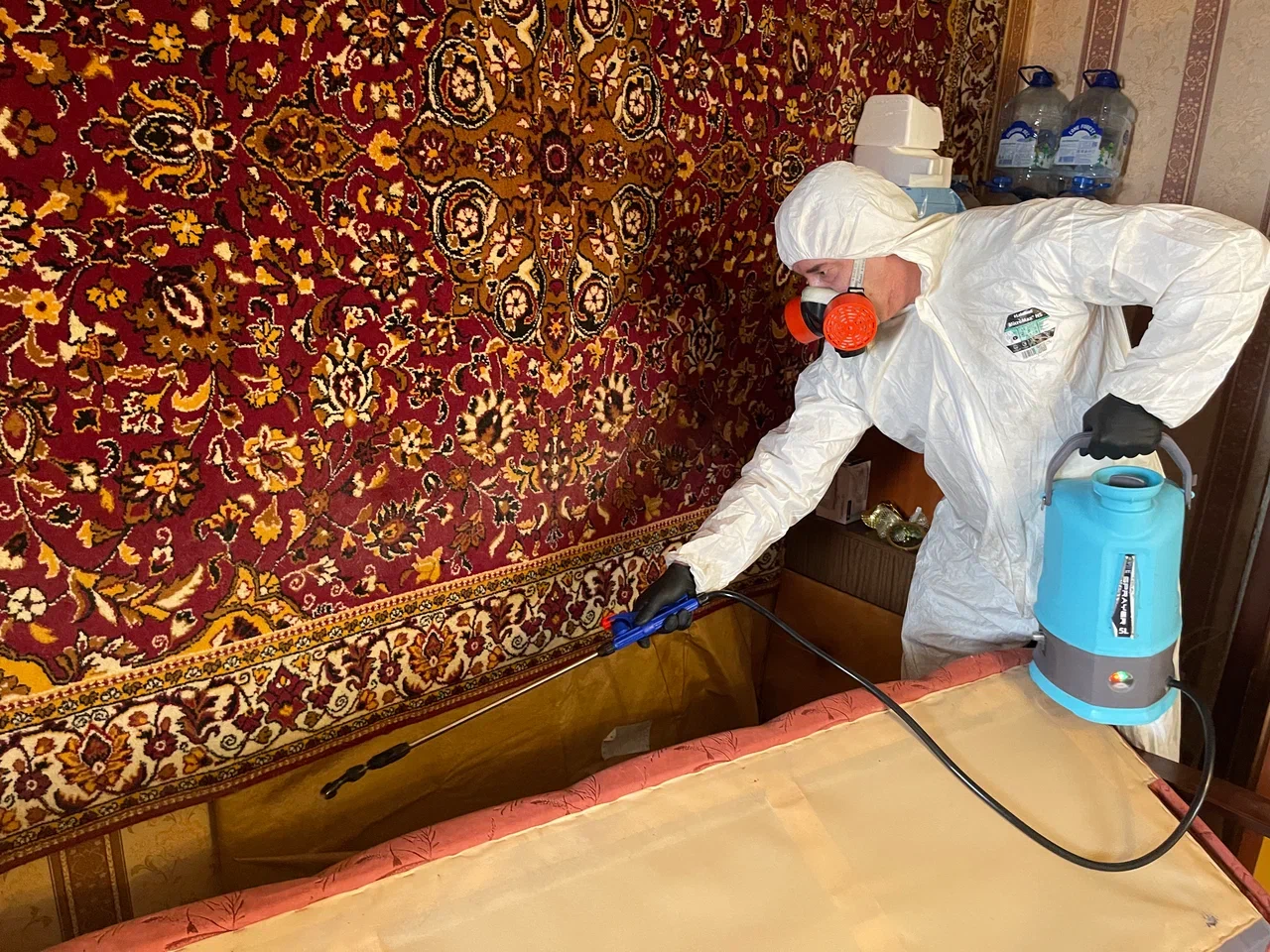 - Дополнительно, если клопы — максимально разложите диваны и кресла, а на кроватях поставьте матрасы на бок. Шкафы с одеждой плотно закройте, если такой возможности нет, то одежду можно накрыть водонепроницаемым материалом (например мусорными пакетами).